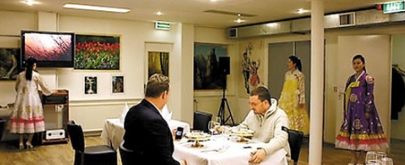 據(jù)報道,由荷蘭企業(yè)家同朝方合作開辦的這家餐廳正式名稱為“阿姆斯特丹平壤海棠花餐館”。該餐館9名工作人員都是朝鮮人,包括總經(jīng)理韓明姬和4名廚師。餐館里懸掛著幾幅朝鮮畫家的畫作。