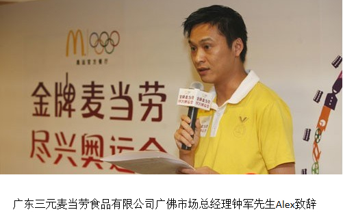 廣東三元麥當(dāng)勞食品有限公司廣佛市場(chǎng)總經(jīng)理鐘軍先生Alex致辭