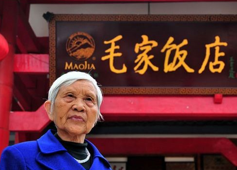 她成為建國60年餐飲60人其中一員,靠著一張照片成就一個連鎖品牌。她曾受到過毛澤東主席的親切接見。改革開放之后,她以精明的眼光率先開設“毛家飯店”,經營當年毛澤東愛吃的飯菜,贏得了八方賓客的贊賞。后開設了百家加盟連鎖店,家家生意興隆。