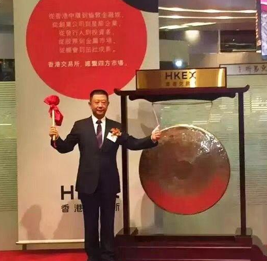 海底撈掌門人張勇在港交所敲鑼(2016年7月頤海上市)