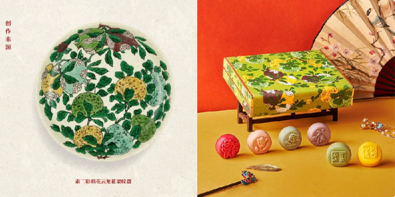 月餅設(shè)計(jì)從古董瓷器、掐絲琺瑯、宋徽宗喜愛(ài)的字畫(huà)等文物中獲得靈感,將傳統(tǒng)文化融入月餅之中。