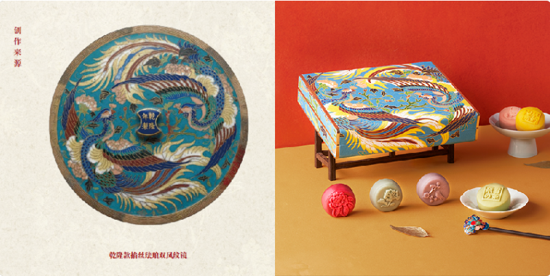 繼去年的“風(fēng)雅頌”主題月餅后,今年,繼續(xù)延續(xù)“中國(guó)風(fēng)”,產(chǎn)品設(shè)計(jì)從古董瓷器、掐絲琺瑯、宋徽宗喜愛(ài)的字畫(huà)等文物中獲得靈感,將傳統(tǒng)文化融入月餅。僅僅兩款禮盒的產(chǎn)品名稱(chēng),就足以使人腦補(bǔ)出中秋月朗、石榴滿(mǎn)園,鳳凰于飛、??其羽的?麗畫(huà)面。
